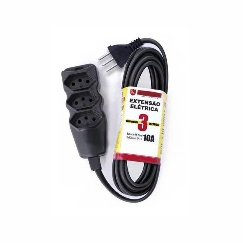 EXTENSÃO 01,5 METROS PRETA 3 TOMADAS 2 PINO + TERRA PP 10A 250V